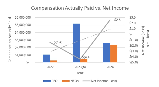 As demonstrated by the following graph, the amount of total compensation actually paid to our CEOs and the average amount of compensation actually paid to the Company’s NEOs as a group (excluding our CEOs) is generally not aligned with the Company’s net income over the three years presented in the “Pay Versus Performance Table for 2024”. The Company uses net income as a specific performance measure in the overall executive compensation program along with gross margin levels, which the Company considers a leading indicator of profitability over the long term. For additional information regarding the performance measures used to determine cash- and equity-based incentive compensation for the Company’s NEOs, see the section captioned “Executive Compensation” beginning on page 20 of this Proxy Statement.